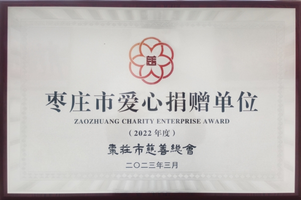 | 2022 | 棗莊市愛心捐贈單位 | 棗莊市慈善總會 | 202303 |