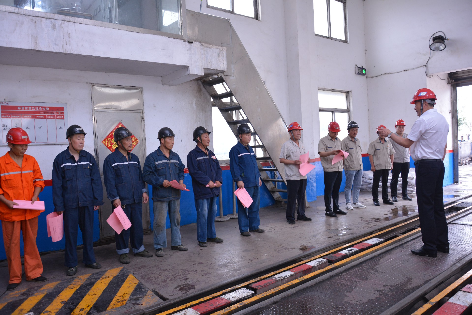 宗成偉一行先后到副井井口房、主井絞車房、調(diào)度指揮中心等工作崗點(diǎn),調(diào)研了解金達(dá)煤礦安全生產(chǎn)情況,代表集團(tuán)黨委慰問安全生產(chǎn)崗位干部職工,并將《致全體員工的一封信》一一發(fā)放到在場(chǎng)職工手中。