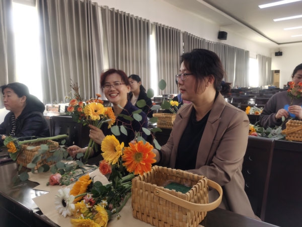 在專業(yè)老師的指導下,她們把工作中的果敢細致變化為心靈手巧,耐心學、認真做,在快樂中分享彼此的心得和感悟,充分發(fā)揮自己的創(chuàng)造力、想象力,用不同的花材設計出了各種各樣的花藝作品。
